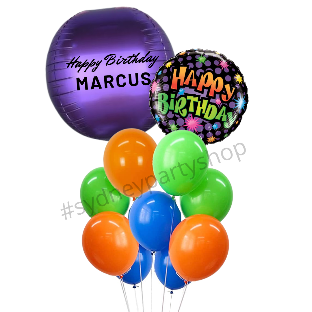 Personalised Purple Happy Birthday Balloon Bouquet